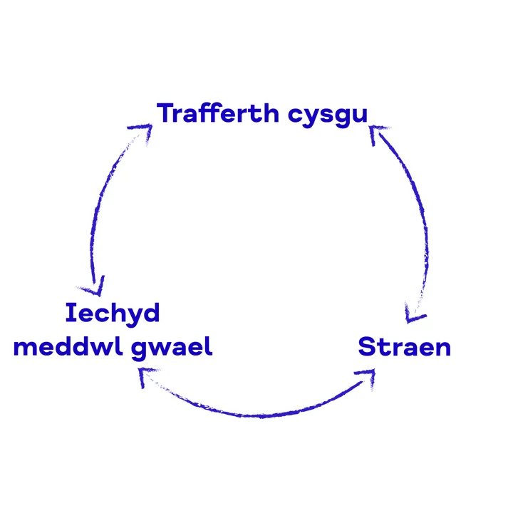 Mae cysylltiad agos rhwng cwsg ac iechyd meddwl. Os wyt ti’n cael trafferth gydag iechyd meddwl, gall hyn effeithio ar ba mor dda wyt ti’n cysgu.