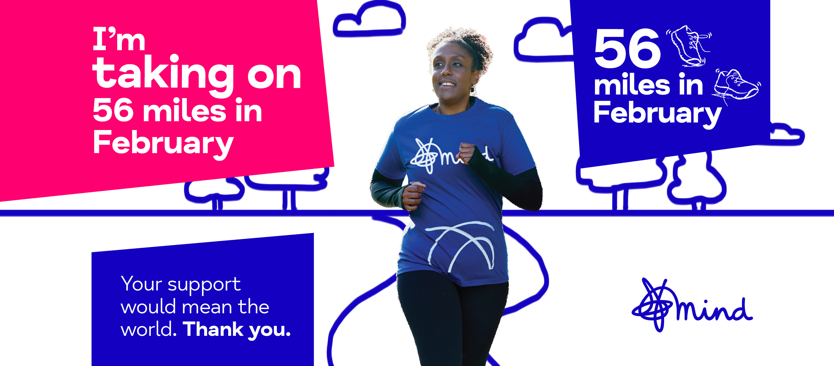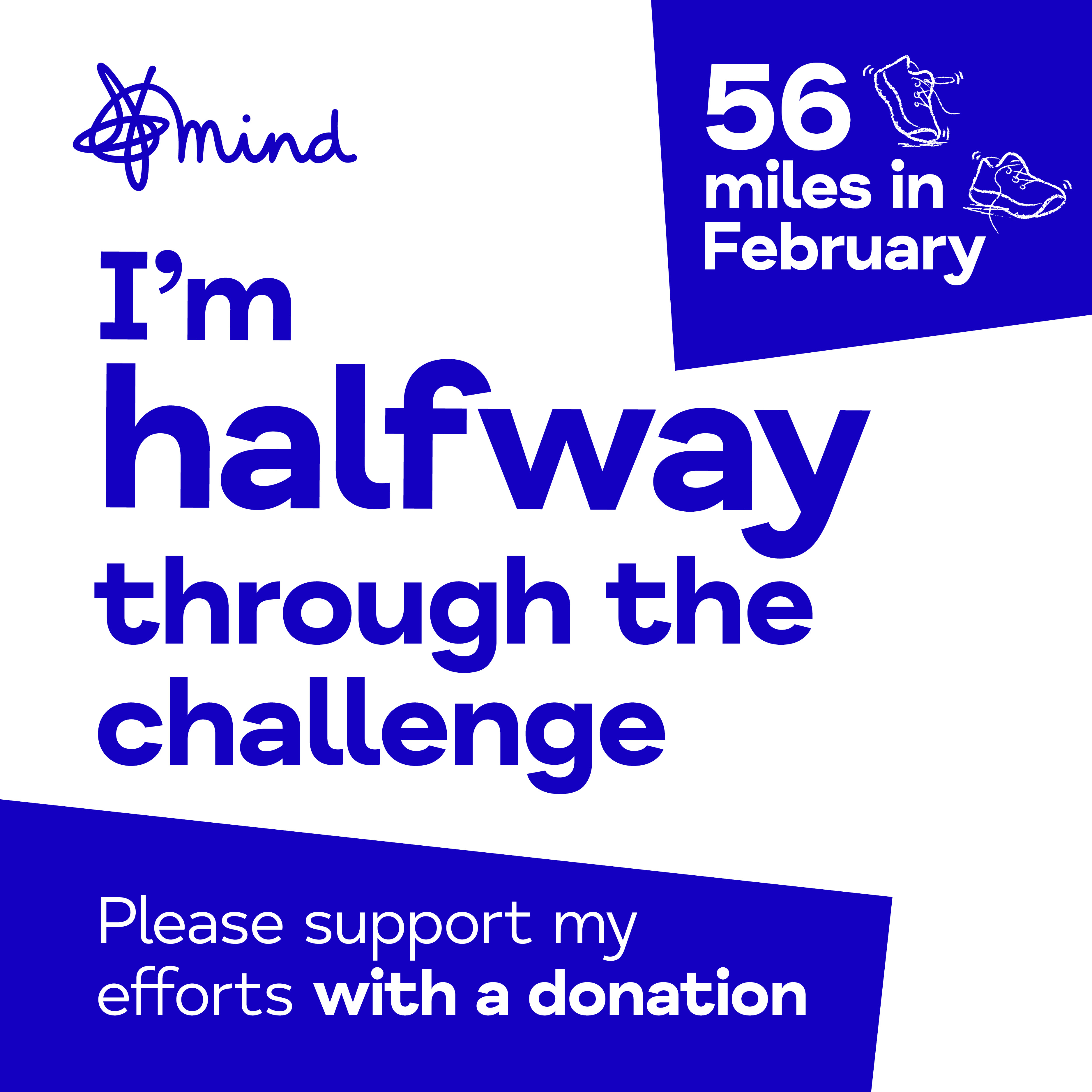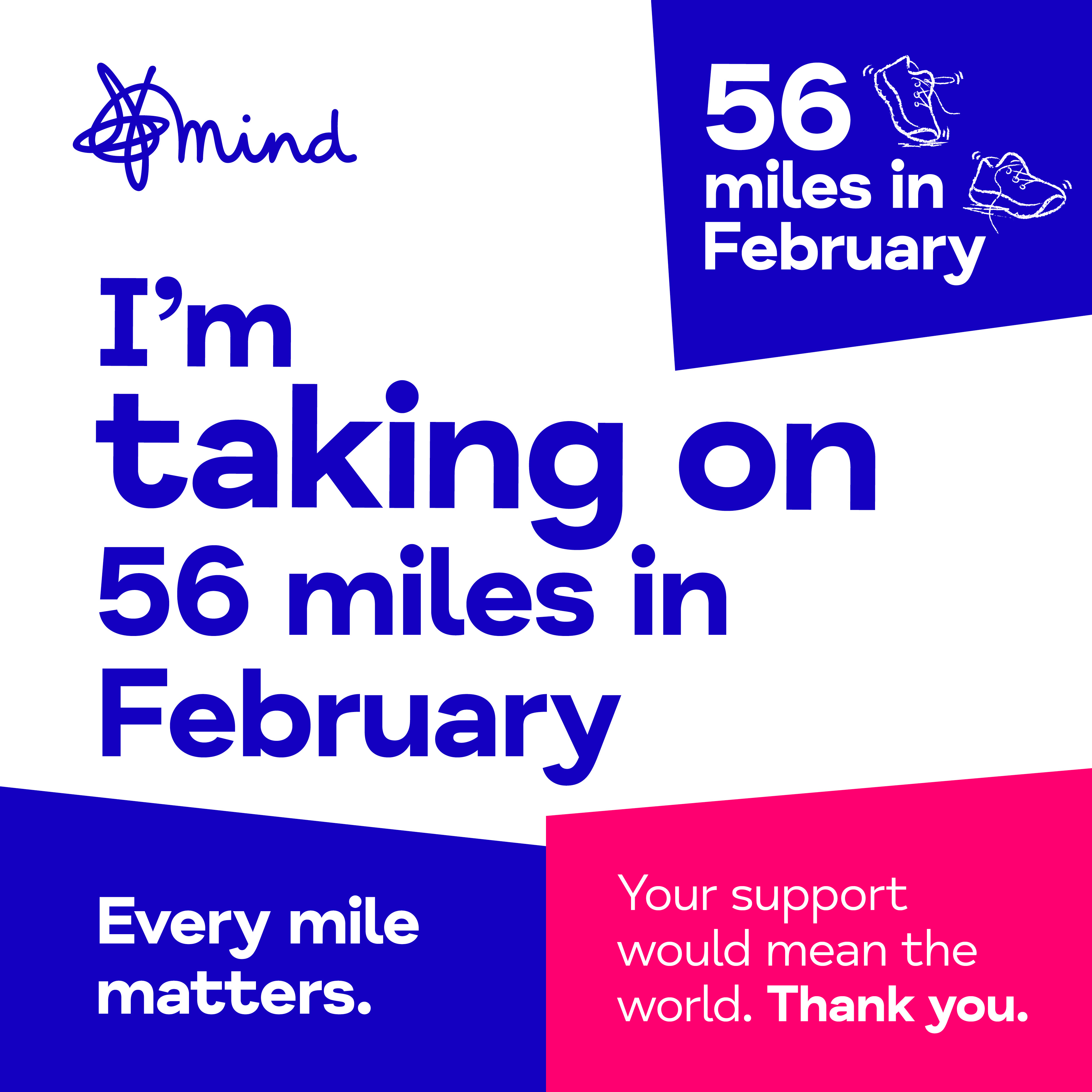 Share these on your social media to let your friends and family know you're taking on 56 miles in February and ask them to sponsor you.