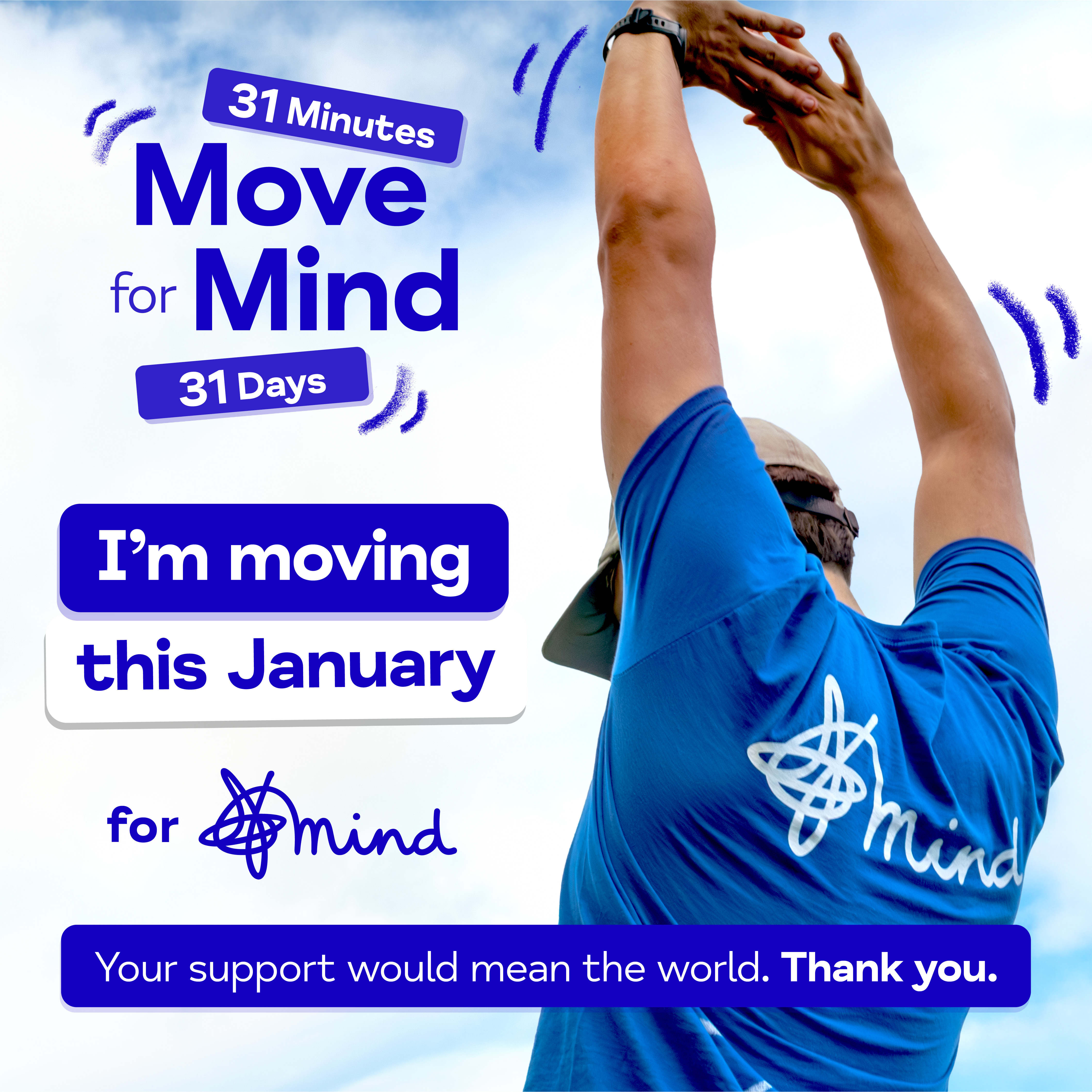 Share these on your social media to let your friends and family know you're taking on Move for Mind and ask them to sponsor you.